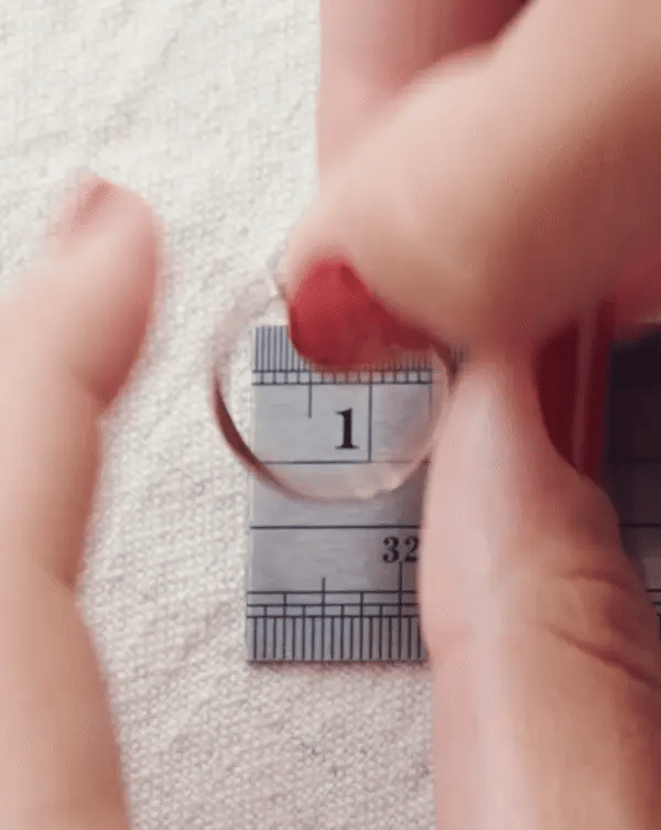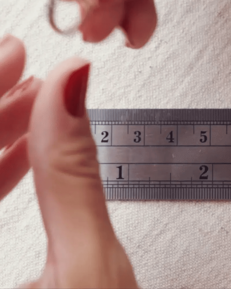 Coge una regla y mide el diámetro interior del anillo en milímetros. Tal y como mostramos aquí. Sin contar el relieve.